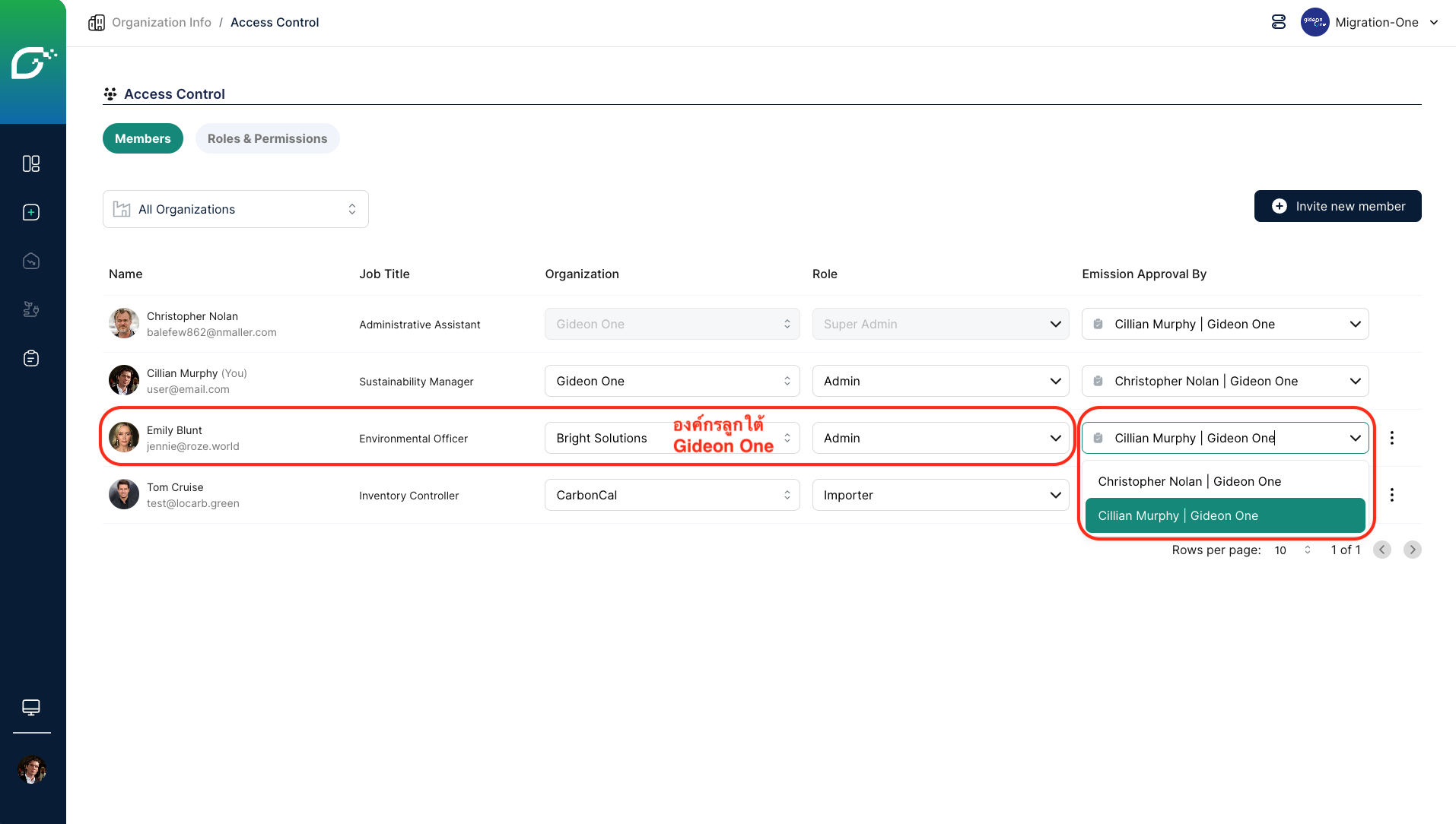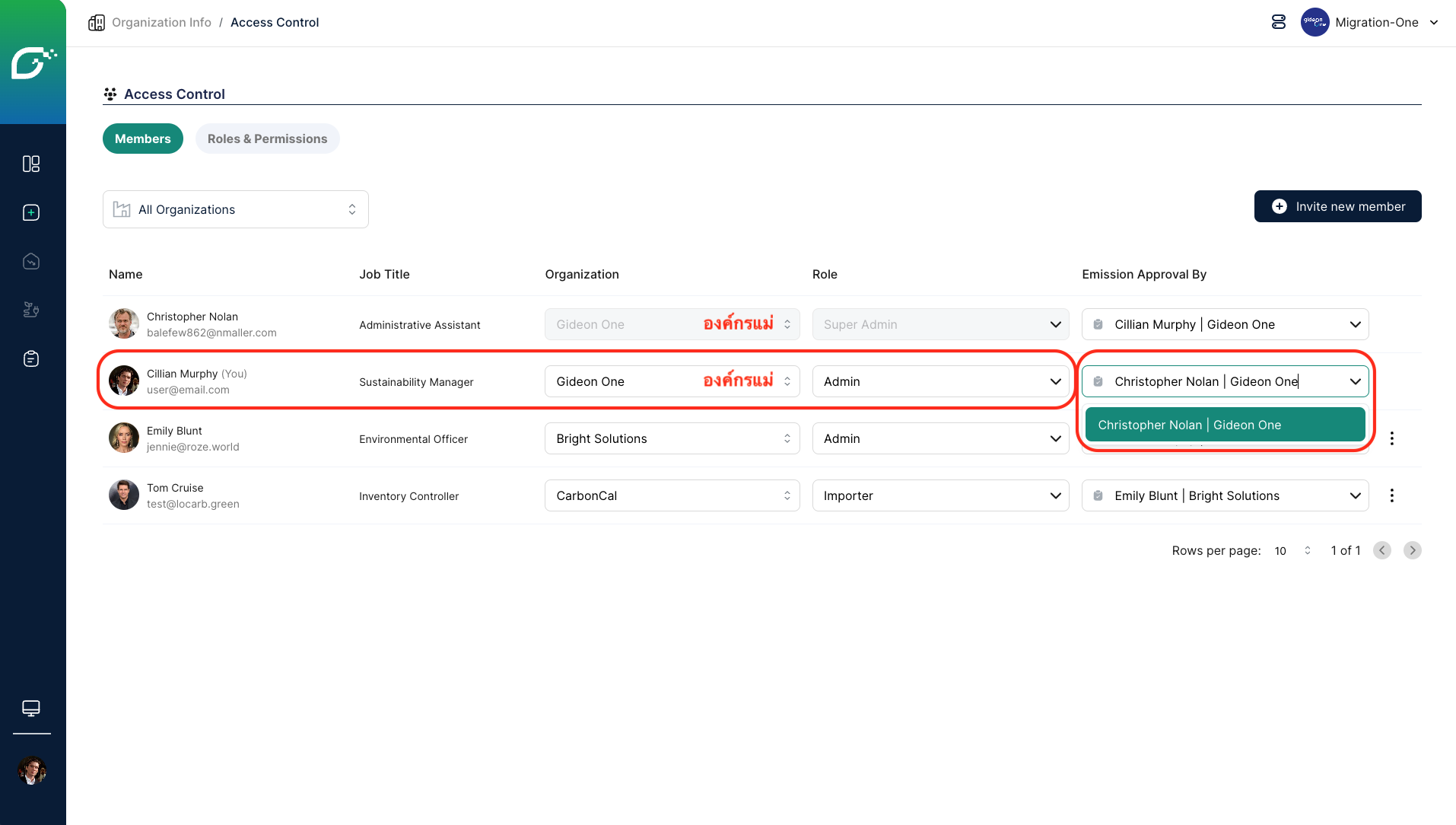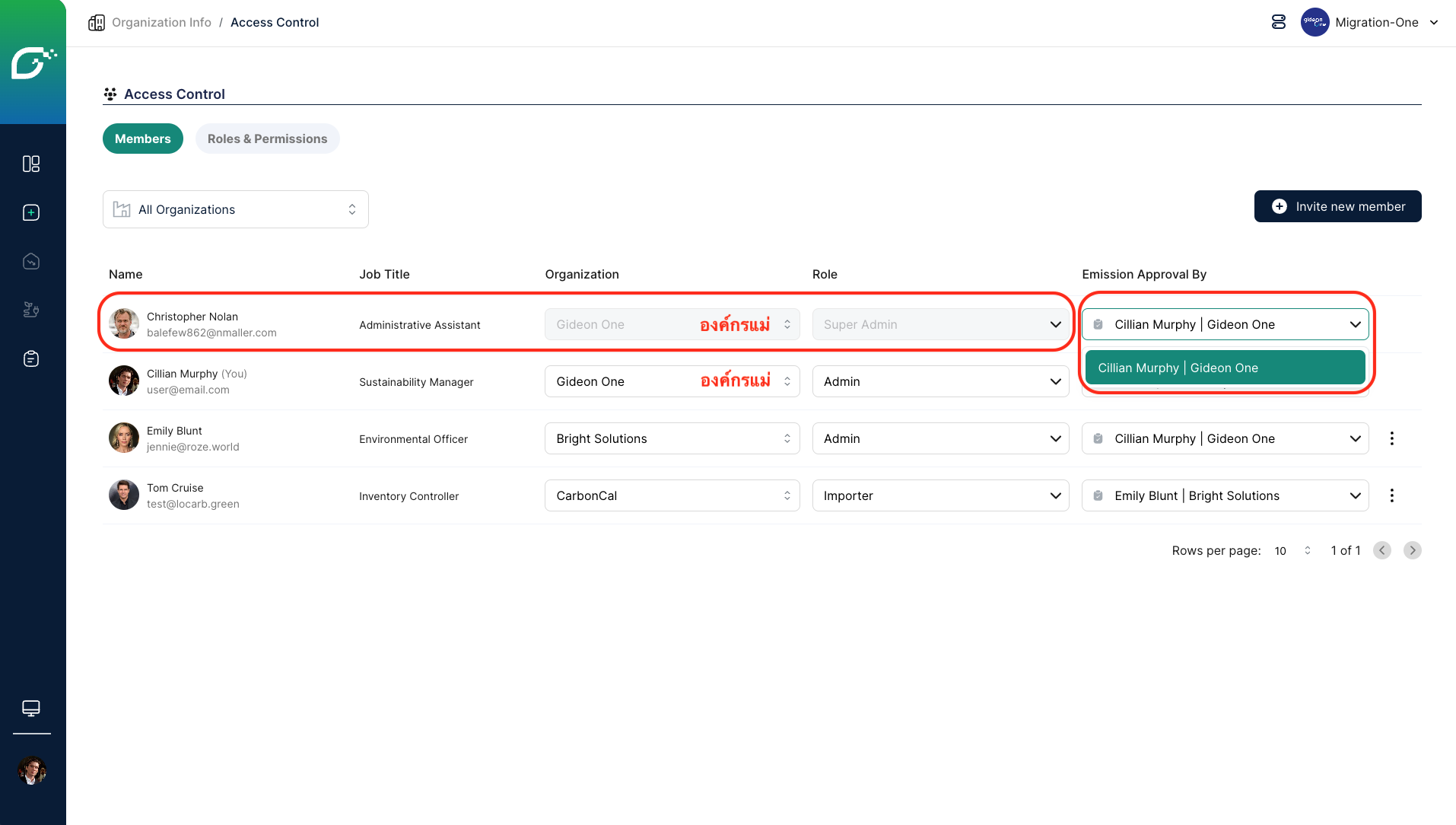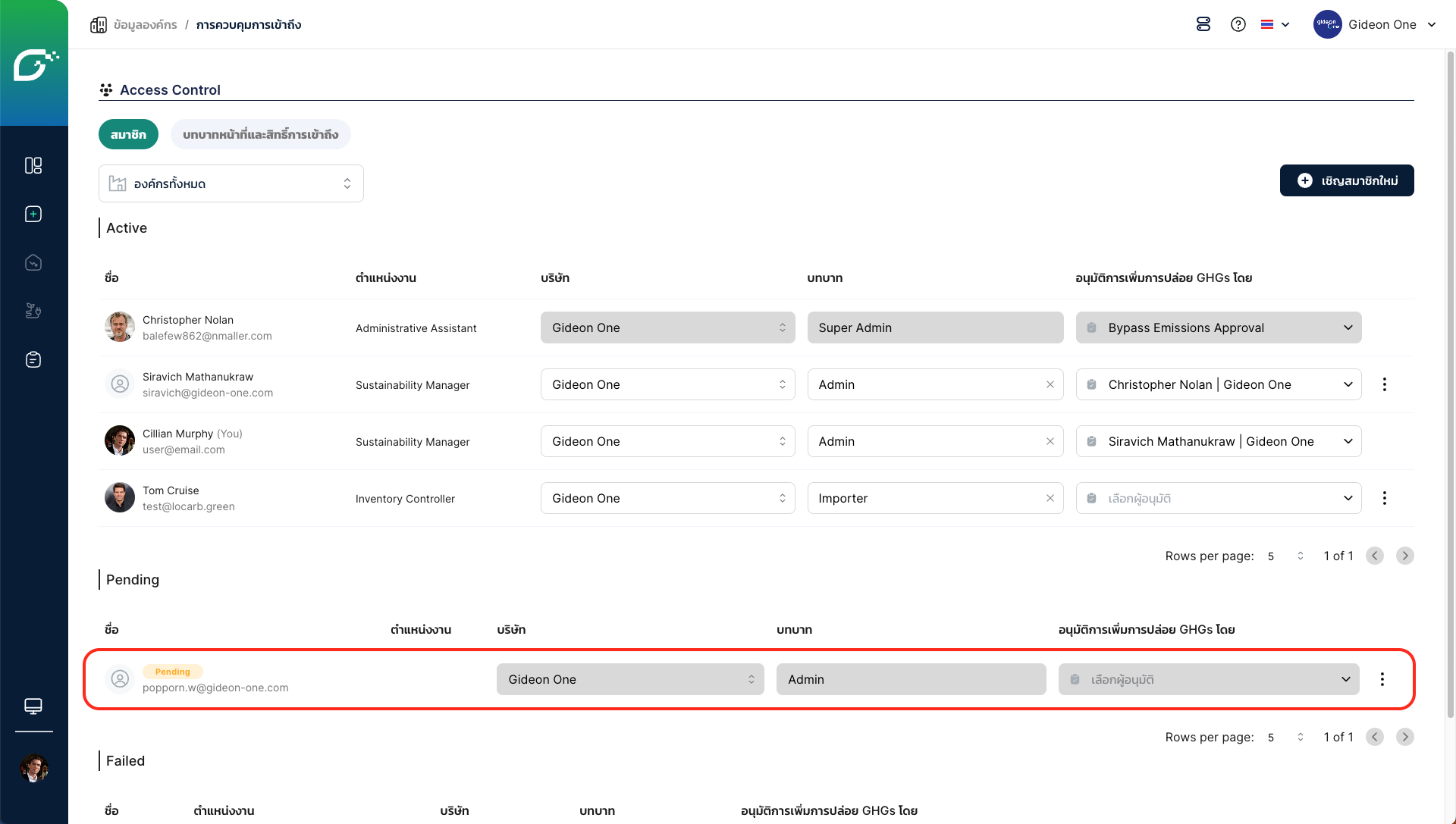 - หากคุณอยู่ในบทบาท Admin / Super Admin คุณสามารถกำหนด ผู้อนุมัติ (Approver) การนำเข้าข้อมูลการปล่อย GHGs ได้เอง