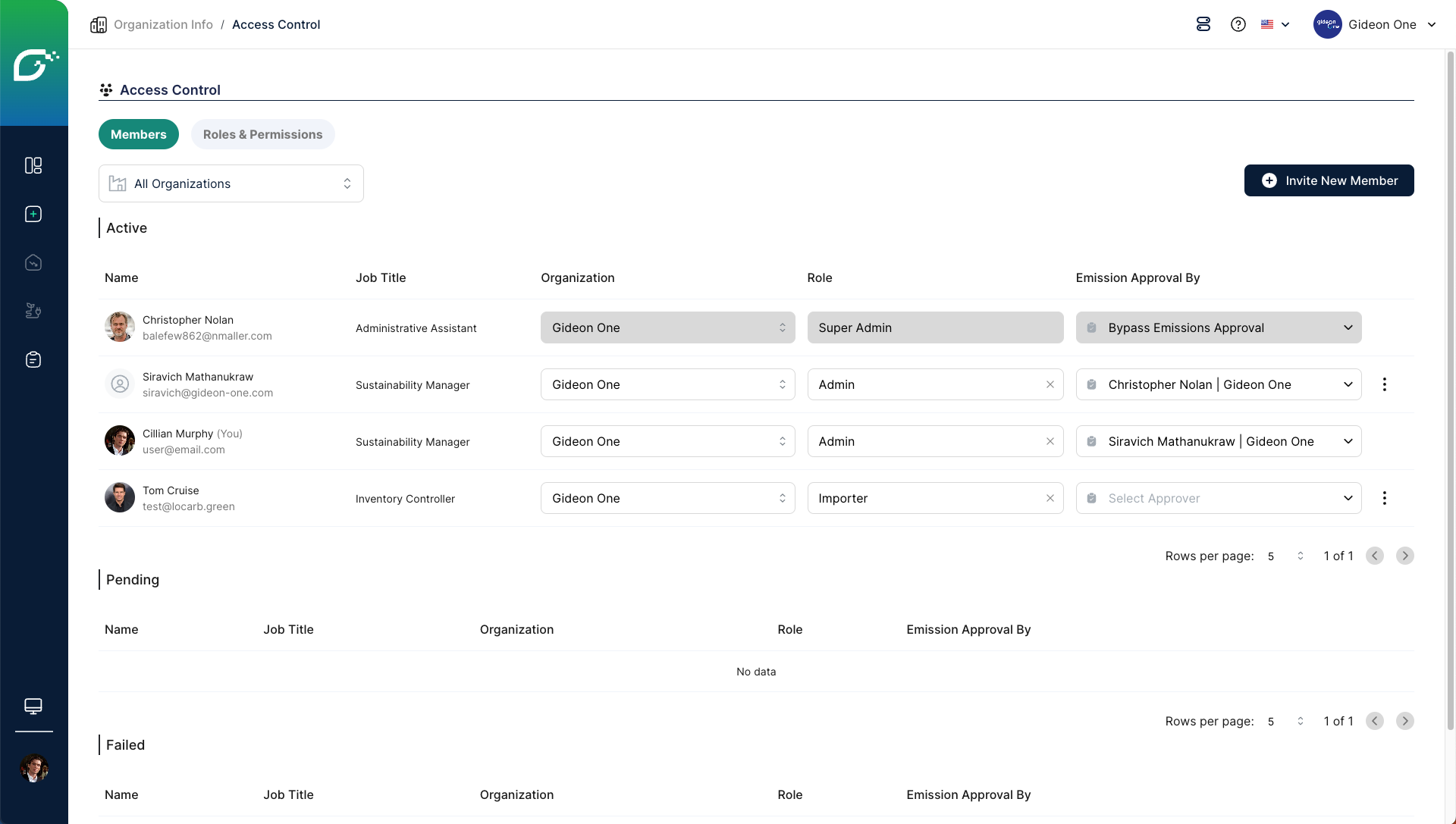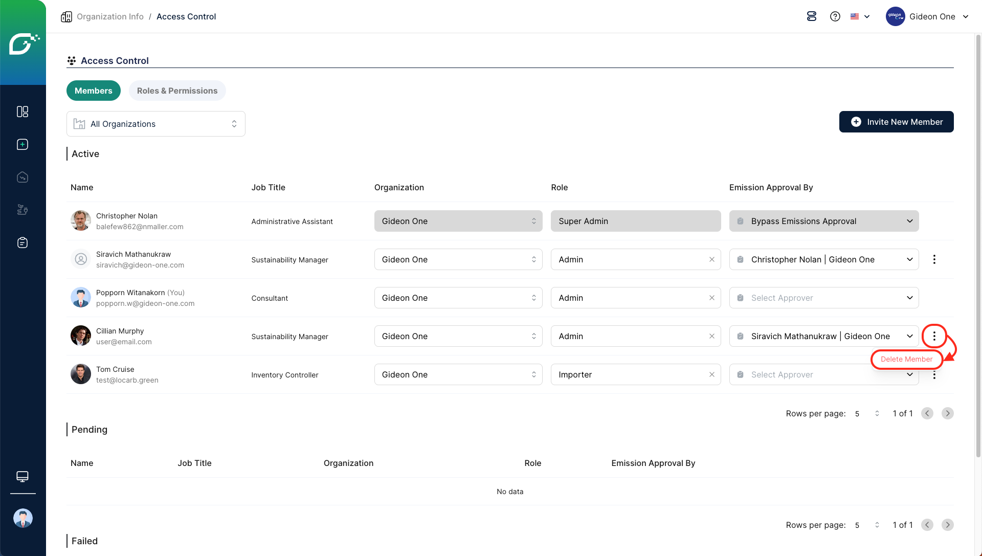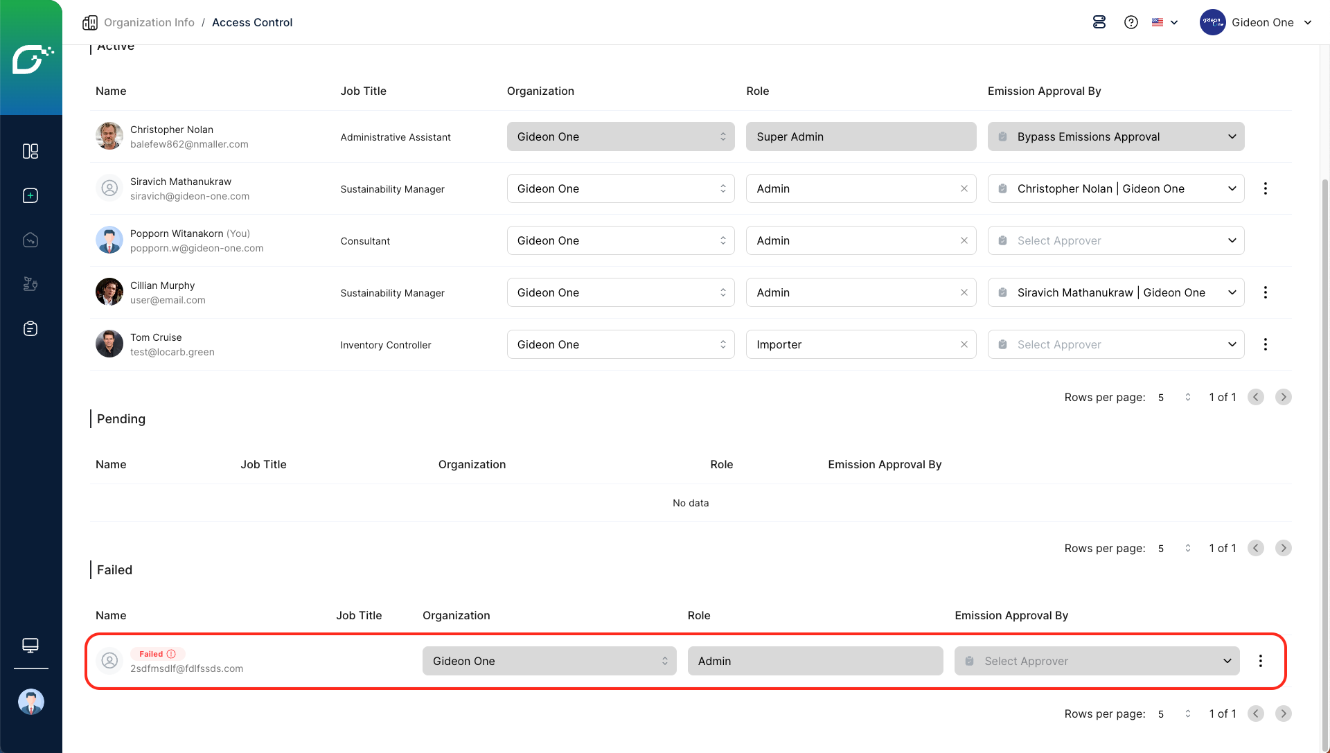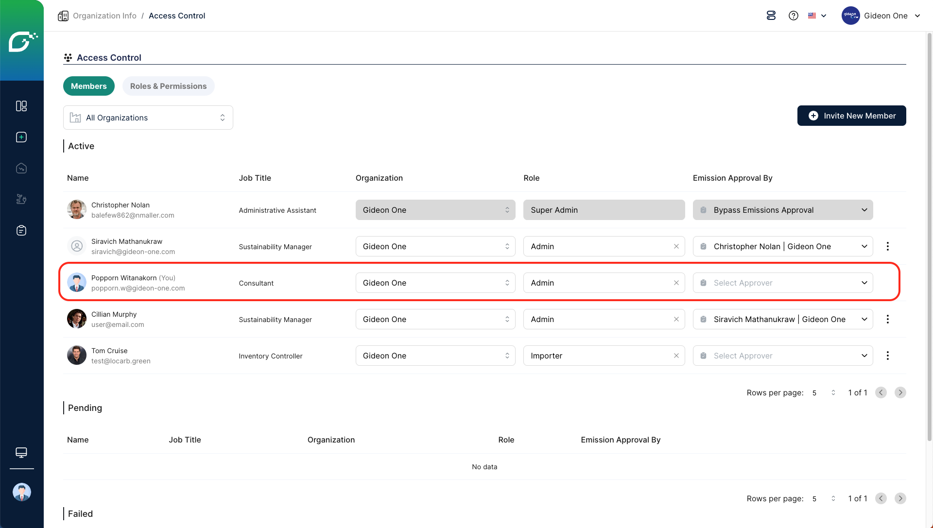 - หากคุณอยู่ในบทบาท Admin / Super Admin คุณสามารถกำหนด ผู้อนุมัติ (Approver) การนำเข้าข้อมูลการปล่อย GHGs ได้เอง