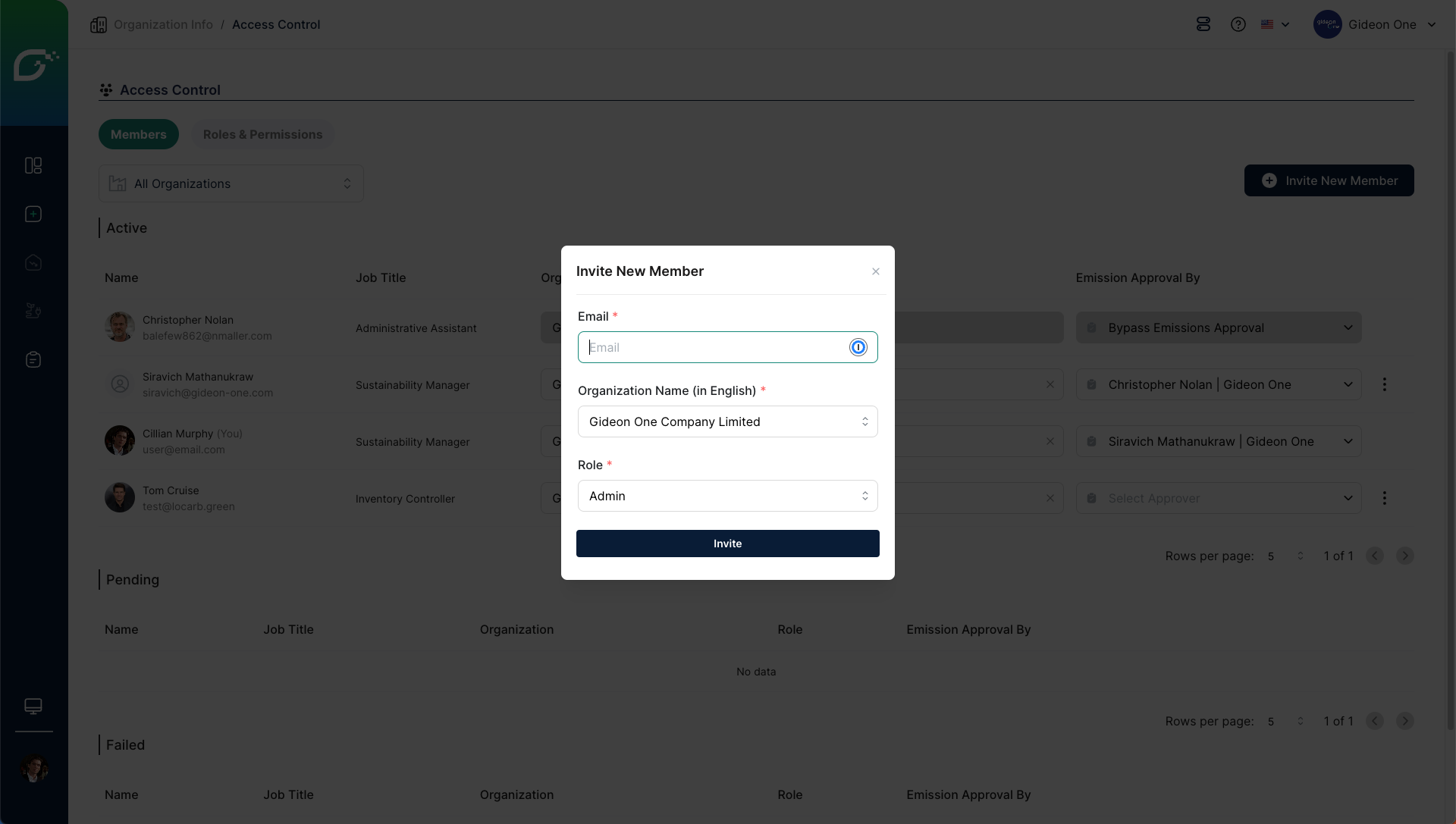 หากคุณเป็นผู้ใช้งานในบทบาท เจ้าของบัญชี / Super Admin หรือ ผู้ดูแล / Admin คุณควรเชิญผู้ใช้งานในทีม และกำหนดบทบาทให้เสร็จสิ้น ก่อนจะเริ่มใส่ข้อมูลการปล่อยก๊าซเรือนกระจก เพื่อให้ผู้ใช้งานที่ได้รับเชิญมีขอบเขตการทำงานที่ชัดเจน